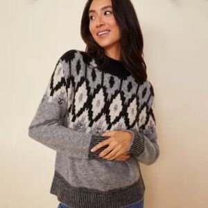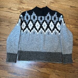 MONROW Mock Neck Fair Isle Sweater In Heather Grey XS