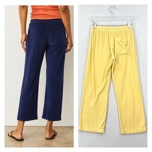 MONROW Rib Terry Cloth Crop Pants Womens Small Yellow Pull On Lounge Athleisure