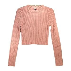 MONROW Ribbed Cotton Sweater – Women’s Medium – Cropped Pink – Fitted Y2K Style – NWT