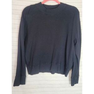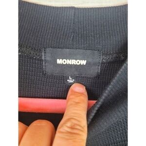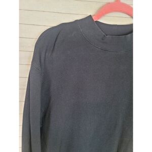 MONROW SUPER SOFT BOYFRIEND WAFFLE KNIT LONG SLEEVE IN BLACK, SZ LARGE