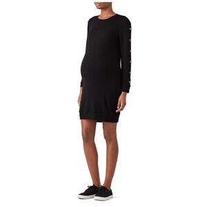 MONROW Sweatshirt Maternity Sheath Dress Casual Cute & Comfortable Black Size L