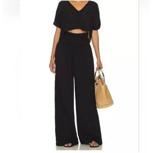 MONROW Trousers Black Pants Size XL Wide Leg Cotton NWT $180