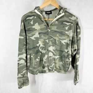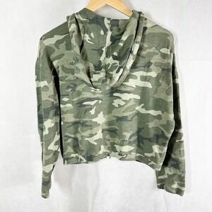 MONROW Urban Camo Zip-Up Crop Casual Hoodie Size XS