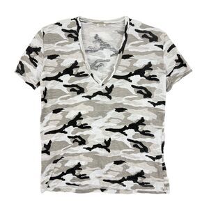 MONROW Women’s Camo Print V-Neck T-Shirt XS Gray Short Sleeve EUC B65