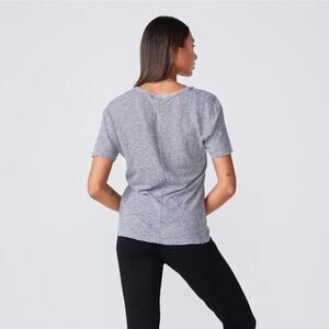 MONROW Women's Gray Textured Tri-Blend Relaxed V Neck Tee T-Shirt Size XL NWOT. Our textured tri-blend relaxed v is definitely one of our top go-to classic MONROW tees. The modest v adds a flirty element and the flowy waistline looks great loosely tucked into jeans or sweats. Features our signature seamed detail down the spine. 50% Polyester, 38% Cotton, 12% Rayon.