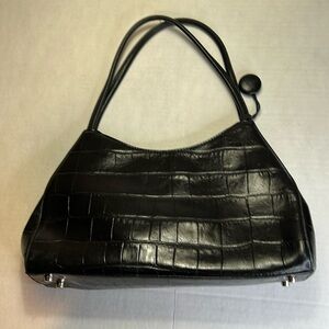 MONSAC ALLIGATOR/CROCODILE EMBOSSED LEATHER HANDBAG SHOULDER BAG BLACK