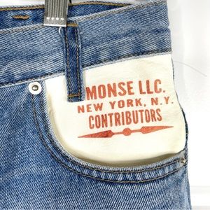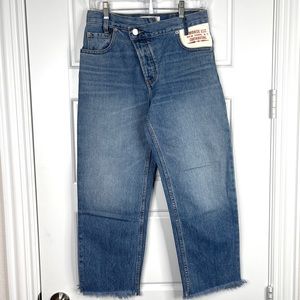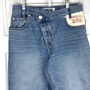 MONSE Straight Leg Asymmetrical Waist Jeans 100% Lamb Leather Trim NEW Size 2