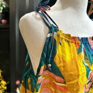 MONSOON VERADERO MIX PRINT CAMI TOP TROPICAL YELLOW PALM LEOPARD NWT Size M
