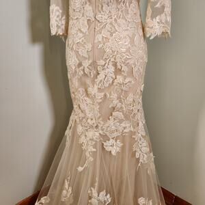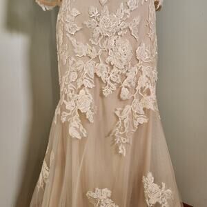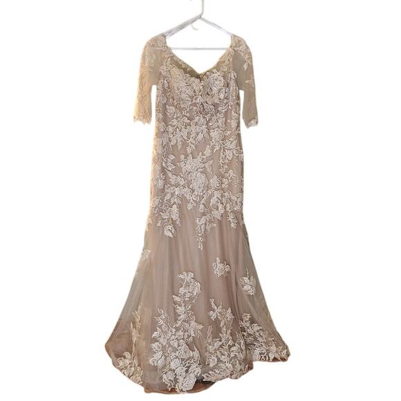 MONTAGE NWT by Mon Cheri Lace Trumpet Nude Gown, Size 12