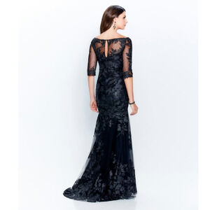Illusion three-quarter sleeve embroidered allover lace trumpet gown