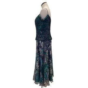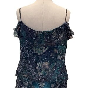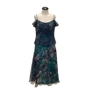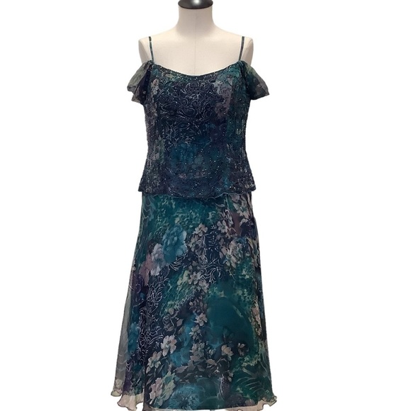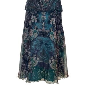 MONTAGE by MON CHERI Floral Silk Beaded Tea Length Dress - Size 12