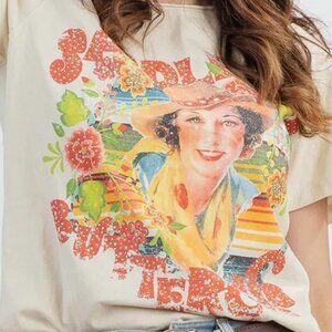 Retro Western Saddle Up Buttercup Cowgirl Portrait Graphic With Rhinestone detail on the front