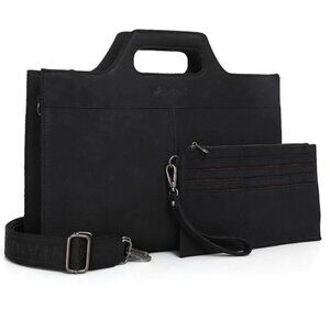 MONTANA WEST Black Genuine Leather Laptop Case Tote & Wristlet Set NWT