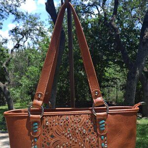 MONTANA WEST EMBROIDERED CUT-OUT BOOT SCROLL TOTE BAG