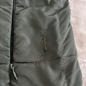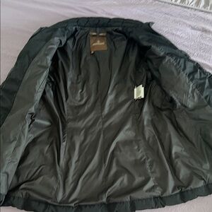 Stylish collared A-line MONTCLER jacket to keep you warm and still show off your curves. Two zippered pockets on the outside, zipper pulls need to be replaced. Has a slight closed tear near the left pocket which can barely be seen due to its location. Otherwise in very good condition!!! Can be used in spring, fall or the beginning of winter. Very warm jacket!