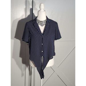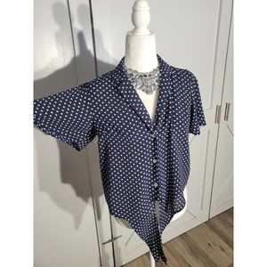 MONTEAU BLOUSE POLKA DOT COLOR BLUE SHORT SLEEVE POLY/SPANDEX SIZE S