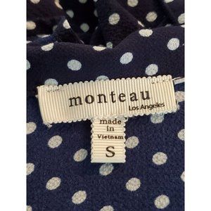 MONTEAU BLOUSE POLKA DOT COLOR BLUE SHORT SLEEVE POLY/SPANDEX SIZE S PIT TO PIT 19" LENGTH 22" WEIGHT 5OZ CONDITION IS GOOD! NO DETAILS OR STAINS! A-193 ******Buy more than one and get a discount. *You also save on combining shipping.*SEND ME A MESSAGE. *****VISIT MY STORE TO SEE THE ENTIRE INVENTORY AXILA A AXILA 19" LARGO 22" LA CONDICION ES BUENA. NINGUN DETALLE NI MANCHAS! ******COMPRA MAS DE UNO Y OBTEN UN DESCUENTO POR PIESA Y TAMBIEN AL COMBINAR EL ENVIO MANDAME MENSAGE Y TE DOY TU DESCUENTO. ******VISITA MI PERFIL DE NEGOCIO PARA QUE VEAS EL INVENTARIO.