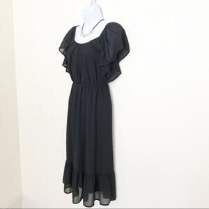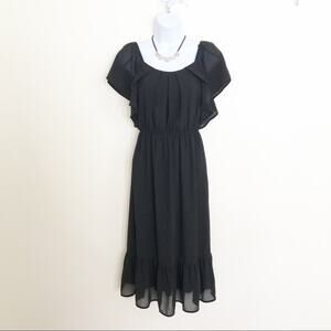 MONTEAU Black Chiffon Ruffle Trim Dress, S, NWT!