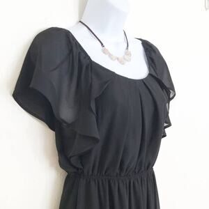Introducing the chic and versatile MONTEAU Black Chiffon Ruffle Trim Dress, brand new with tags (NWT), available in size S. This little black dress is a must-have addition to your wardrobe.