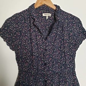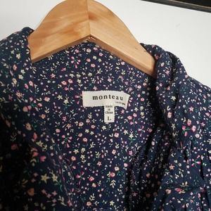 MONTEAU Floral Collared Short Sleeve Swing Dress L