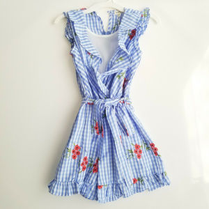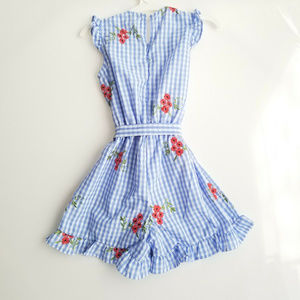 MONTEAU GIRLS EMBROIDED GINGHAM ONE PIECE ROMPER