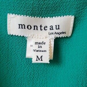 MONTEAU GREEN WRAP TOP SIZE MEDIUM FLUTTER SLEEVE FAUX WRAP HOLIDAY OFFICE