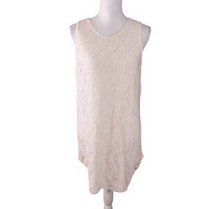 MONTEAU LOS ANGELES! CREAM STRETCH LACE OVER CREAM SHEATH SLEEVELESS DRESS! SZ L