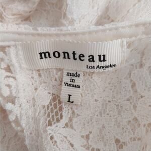 From MONTEAU, Los Angeles, this little sheath style dress has powerful presence! In cream over cream stretch floral lace, it features a slim silhouette and button back neck! Sleeveless, fully lined, Size L, gorgeous on! Excellent! Superb EUC Condition! **ABSOLUTELY GUARANTEED CONDITION: EUC MINTY-EXCELLENT TO LIKE-NEW, by Lily @HauteClub!***