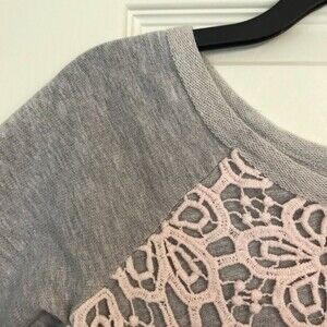 MONTEAU Los Angeles Small Gray Pink Crochet Lace Top Pullover Sweatshirt Flirty