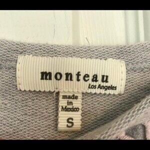 Size small gray with pink crochet Monteau Los Angeles top. Almost has a sweatshirt feel. 3/4 sleeves.