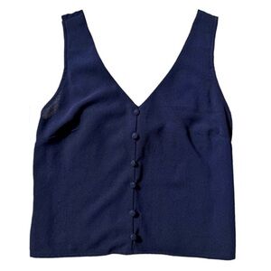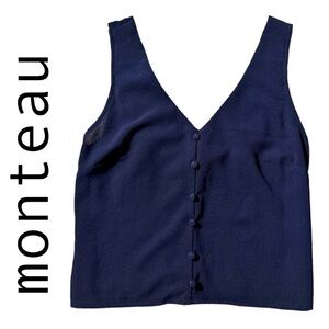 MONTEAU Navy Sleeveless Smocked Back Button Pullover Crop Blouse Top Women’s M