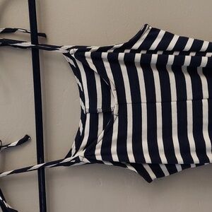 MONTEAU Navy and White Striped Wide Legged Sleeveless Jumper With Waist Sash