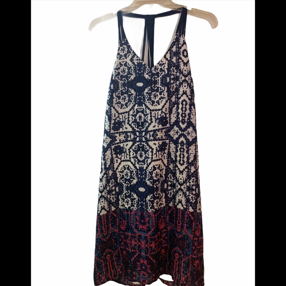 NWT. PRETTY PRINT SUMMER DRESS. 19” pit to pit, 35” long. SIZE LARGE