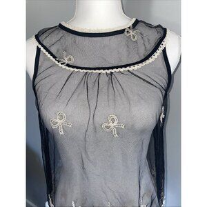 MONTEAU Top Womens SIze MediumBlack Sheer Embroidered Sleeveless Coverup Vintage