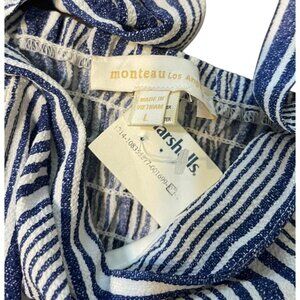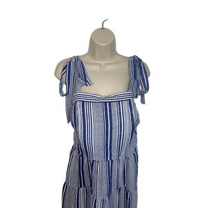 MONTEAU Women's Size Large Tiered Sundress Blue White Stripes