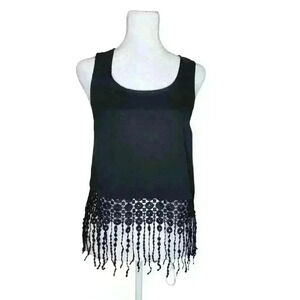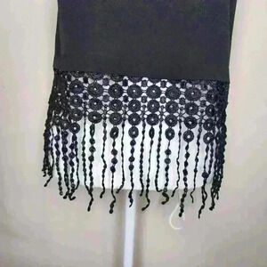 Add some bohemian flair to your wardrobe with this beautiful black crop top from Monteau. Featuring a round neckline and fringe accents, this top is perfect for both casual and party occasions. The sleeveless design and regular fit make it comfortable to wear, while the solid pattern gives it a versatile look.