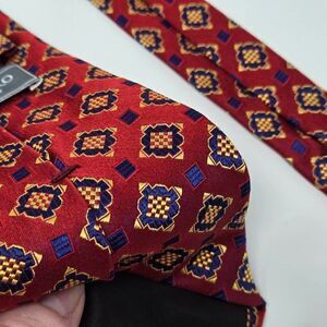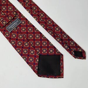 MONTEBELLO ITALY SILK TIE BLUE GOLD RED GEOMETRIC SATIN SHIMMER 3.75" X 59"