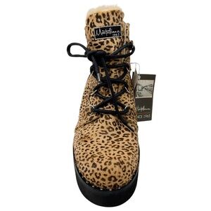 MONTELLIANA 1965 TAN / BROWN LEOPARD PRINTED SHEARLING LINED CALF HAIR BOOTS