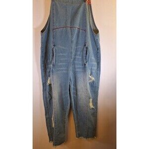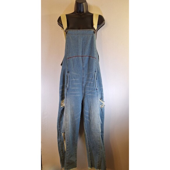 MONTHORIGIN Denim Overalls Women Jeans Blue Bib Distressed Small Baggy Gorpcore