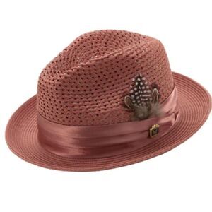 MONTIQUE MEN'S SPICE COLOR PINCH BRAIDED FEDORA WITH MATCHING SATIN RIBBON. H34