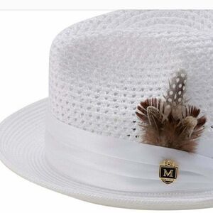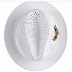 MONTIQUE MEN'S WHITE COLOR PINCH BRAIDED FEDORA WITH MATCHING SATIN RIBBON. H34