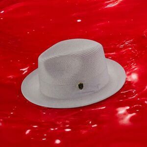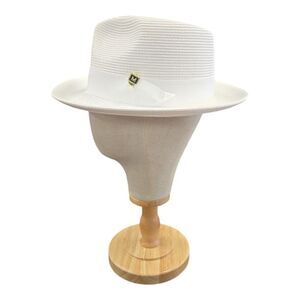 MONTIQUE MENS WHITE WIDE BRIM PINCH FEDORA HAT W/ MATCHING GROSGRAIN RIBBON H42