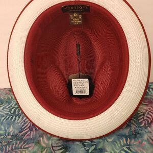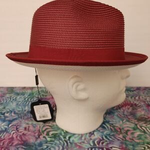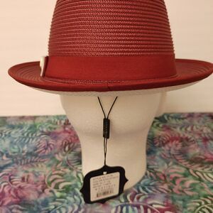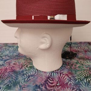MONTIQUE MEN'S BURGUNDY WITH WHITE BOTTOM BRAIDED STINGY BRIM PINCH FEDORA HAT.