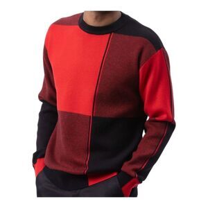 MONTIQUE MENS REGULAR FIT BLACK/RED COLOR BLOCK KNIT SWEATER. SW101.