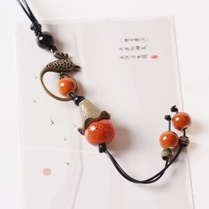 **MONTSERRAT* Orange Phoenix Pendant x Beaded Fashion Necklace