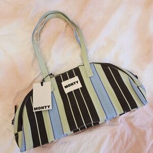 Stylish women's bag featuring a chic green and brown striped design. Perfect for adding a touch of elegance to any outfit.