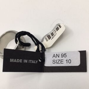 MOOBY silver tone AMORE etched textured ring. Made in Italy. New with tags. Sz 9.5. The tag says it’s a size 10, but when I put in on the ring sizer, it’s only measuring at 9.5.