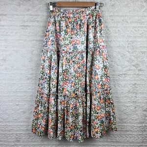 MOODIE Cottagecore Floral Maxi Skirt Tiered Boho Elastic Waist Peasant Country
