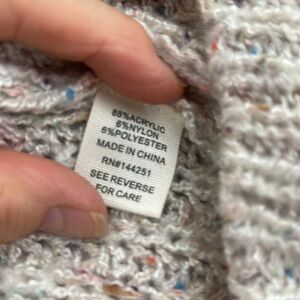 Material: 88% Acrylic 6% nylon, 6% polyester