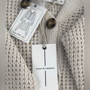 MOON & MADISON reversible V-Neckline button up sweater, knit, taupe NEW w/tags M